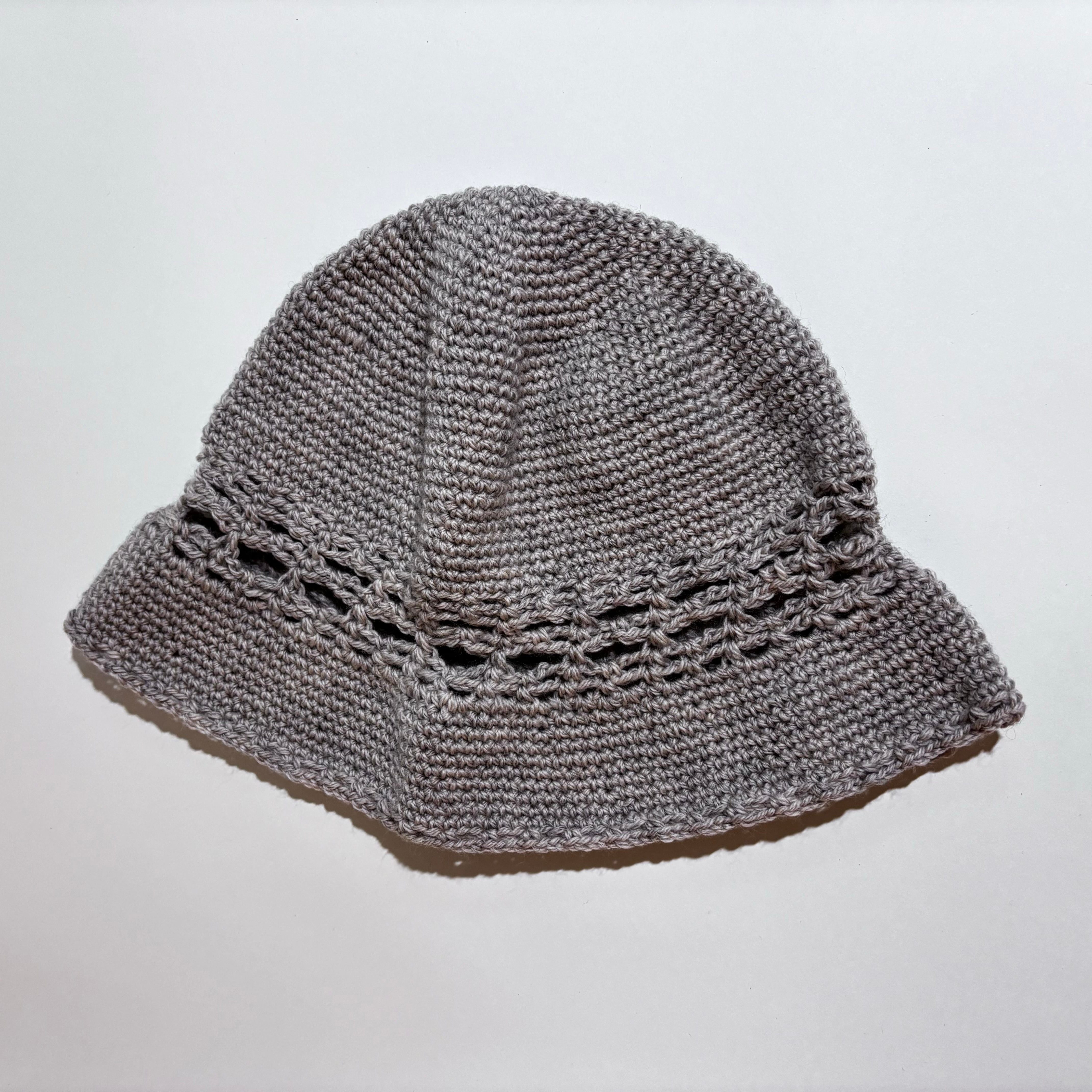 ひとつひとつ手編みで作られたバケットハットです.